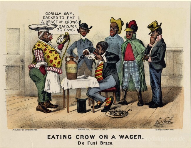 Wir bieten Ihnen eine handgefertigte Reproduktion auf Leinwand des berühmten Kunstwerks 'Essen Krähe auf einer Lohn' von Currier and Ives, aus dem Reproduktionsmuseum.