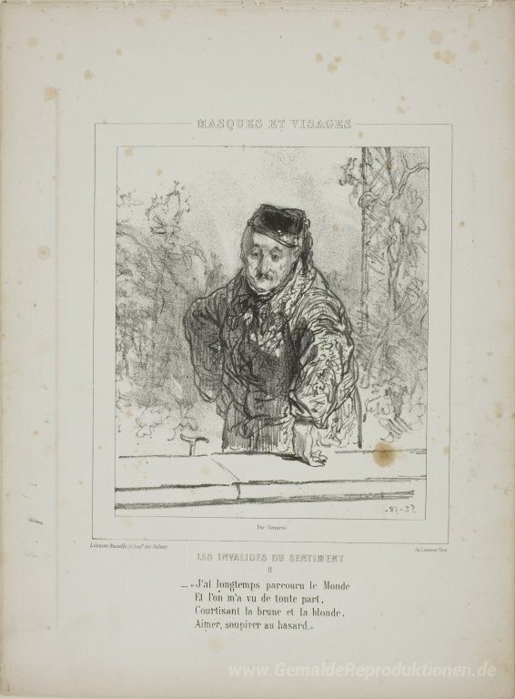 Wir bieten Ihnen eine handgefertigte Reproduktion auf Leinwand des berühmten Kunstwerks 'Les Invalides du Sentiment: J'ai temps parcouru le Monde ...' von Paul Gavarni, aus dem Reproduktionsmuseum.