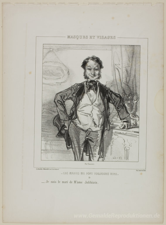 Wir bieten Ihnen eine handgefertigte Reproduktion auf Leinwand des berühmten Kunstwerks 'Les maris mich font toujours rire: Je suis le mari de M'ame Joli' von Paul Gavarni, aus dem Reproduktionsmuseum.