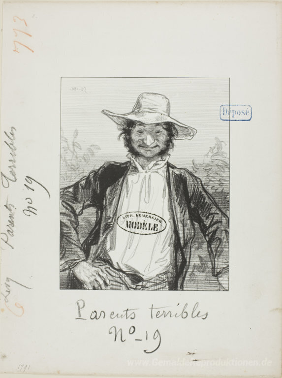 Wir bieten Ihnen eine handgefertigte Reproduktion auf Leinwand des berühmten Kunstwerks 'Les Parents Terribles Serie: Ich bin Mamzelle Jolibiais 'Papa' von Paul Gavarni, aus dem Reproduktionsmuseum.