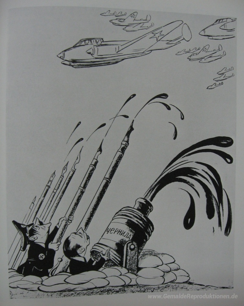 Wir bieten Ihnen eine handgefertigte Reproduktion auf Leinwand des berühmten Kunstwerks 'Ohne Titel' von Kukryniksy, aus dem Reproduktionsmuseum.