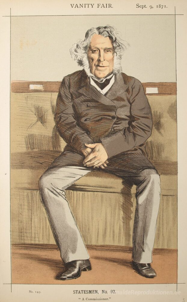 Wir bieten Ihnen eine handgefertigte Reproduktion auf Leinwand des berühmten Kunstwerks 'Staats No.920 Karikatur der Rt Hon Russell Gurney' von James Tissot, aus dem Reproduktionsmuseum.