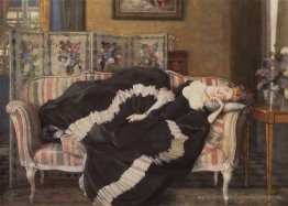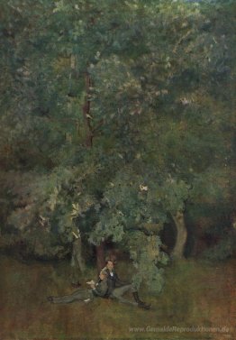 Dame mit dem Hündchen, entspannt auf dem Rasen