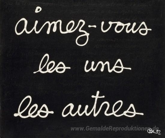Wir bieten Ihnen eine handgefertigte Reproduktion auf Leinwand des berühmten Kunstwerks 'Aimez-vous les uns les autres' von Ben, aus dem Reproduktionsmuseum.