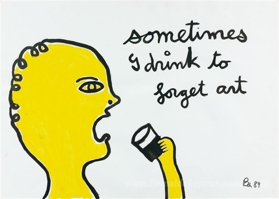 Wir bieten Ihnen eine handgefertigte Reproduktion auf Leinwand des berühmten Kunstwerks 'Manchmal trinke ich die Kunst vergessen' von Ben, aus dem Reproduktionsmuseum.