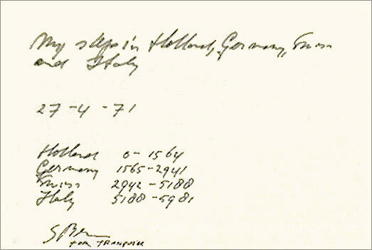 Wir bieten Ihnen eine handgefertigte Reproduktion auf Leinwand des berühmten Kunstwerks 'Meine Schritte in Holland, Deutschland, der Schweiz, Italien' von Stanley Brouwn, aus dem Reproduktionsmuseum.