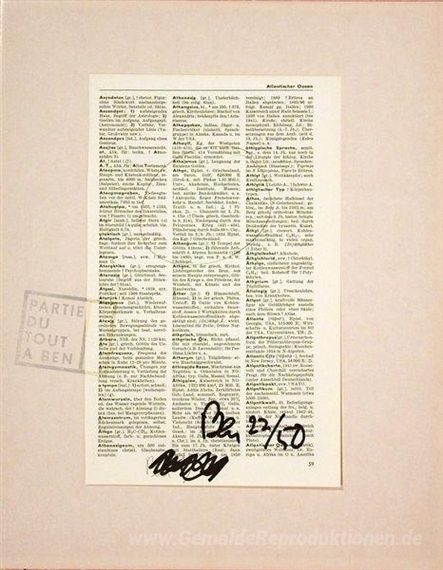 Wir bieten Ihnen eine handgefertigte Reproduktion auf Leinwand des berühmten Kunstwerks 'Partie du tout ein Ben' von Ben, aus dem Reproduktionsmuseum.