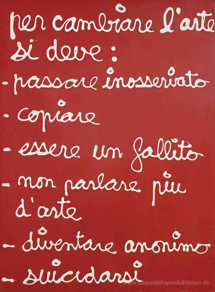 Wir bieten Ihnen eine handgefertigte Reproduktion auf Leinwand des berühmten Kunstwerks 'Per l'arte cambiare' von Ben, aus dem Reproduktionsmuseum.