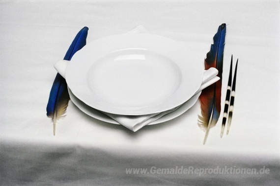Wir bieten Ihnen eine handgefertigte Reproduktion auf Leinwand des berühmten Kunstwerks 'Ursprung der Tischmanieren' von Lothar Baumgarten, aus dem Reproduktionsmuseum.
