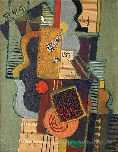 Wir bieten Ihnen eine handgefertigte Reproduktion auf Leinwand des berühmten Kunstwerks 'Komposition med noter' von Gosta Adrian-Nilsson, aus dem Reproduktionsmuseum.
