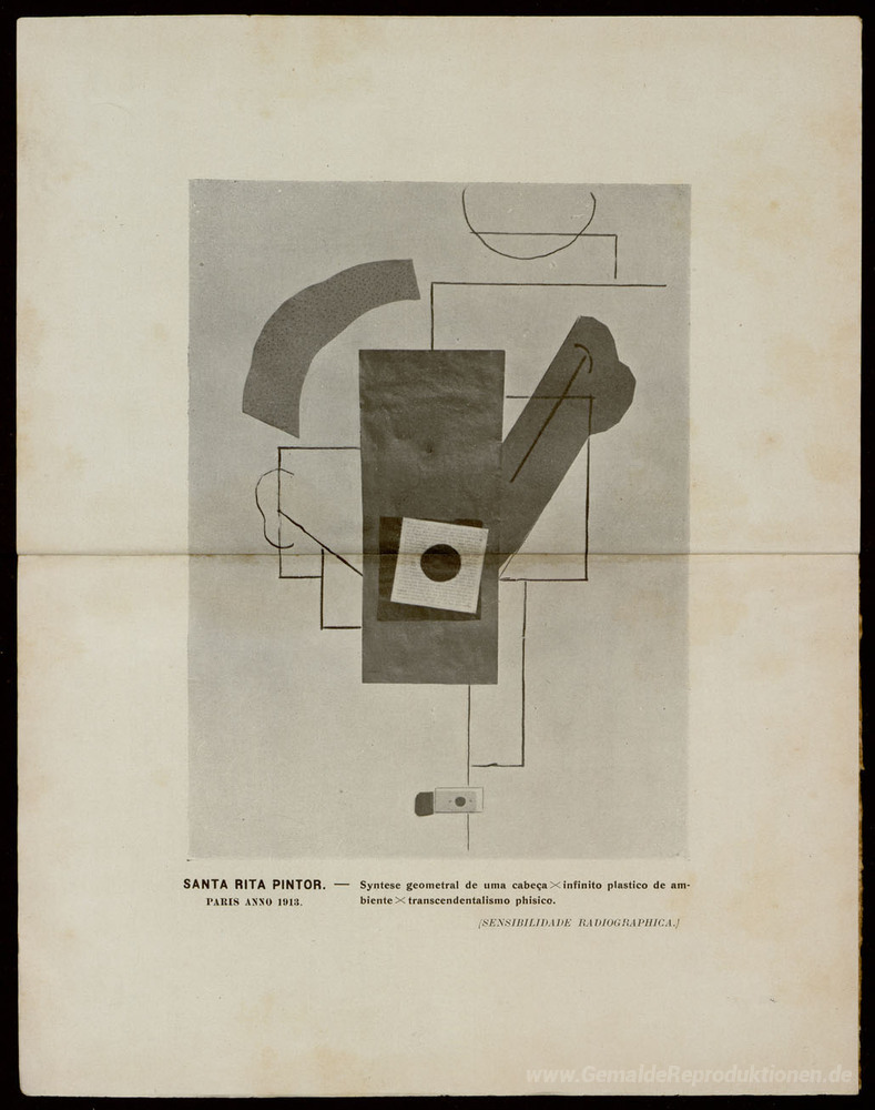 Wir bieten Ihnen eine handgefertigte Reproduktion auf Leinwand des berühmten Kunstwerks 'Syntese geometral de uma cabeça x infinito plástico de ambiente ' von Guilherme de Santa-Rita, aus dem Reproduktionsmuseum.
