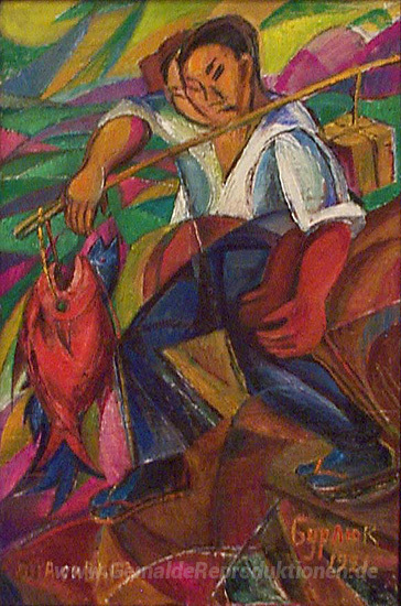 Wir bieten Ihnen eine handgefertigte Reproduktion auf Leinwand des berühmten Kunstwerks 'Japan Fischer' von David Burliuk, aus dem Reproduktionsmuseum.