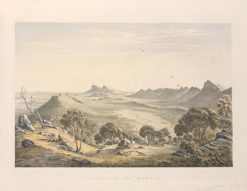 Wir bieten Ihnen eine handgefertigte Reproduktion auf Leinwand des berühmten Kunstwerks ' Australian Landscapes' von Eugene von Guerard, aus dem Reproduktionsmuseum.