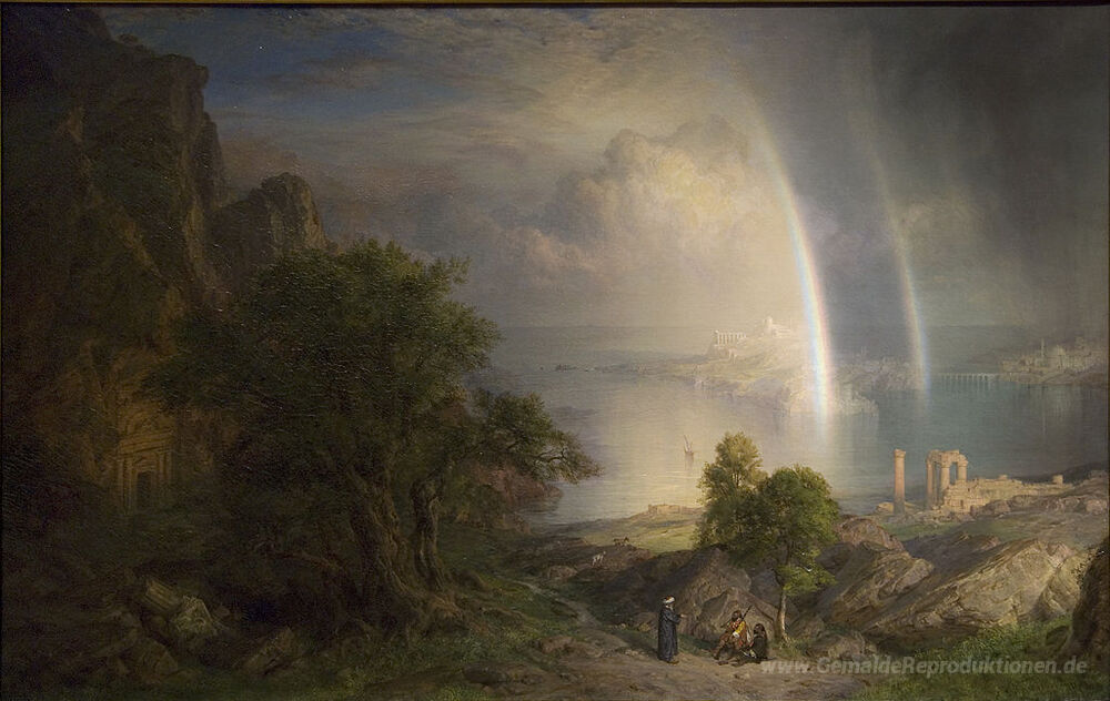 Wir bieten Ihnen eine handgefertigte Reproduktion auf Leinwand des berühmten Kunstwerks 'Ägäisches Meer' von Frederic Edwin Church, aus dem Reproduktionsmuseum.