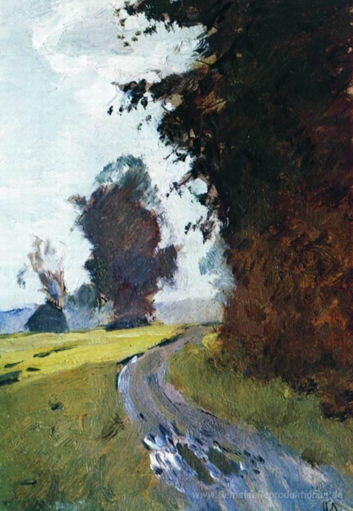 Wir bieten Ihnen eine handgefertigte Reproduktion auf Leinwand des berühmten Kunstwerks 'Abend. Pfad.' von Isaac Levitan, aus dem Reproduktionsmuseum.