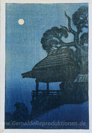 Wir bieten Ihnen eine handgefertigte Reproduktion auf Leinwand des berühmten Kunstwerks 'Abend Szene auf Ishiyama Temple' von Ito Shinsui, aus dem Reproduktionsmuseum.