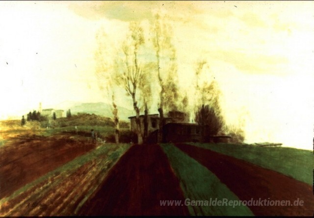 Wir bieten Ihnen eine handgefertigte Reproduktion auf Leinwand des berühmten Kunstwerks 'Ackerland Korridore in den frühen Frühling.' von Arnold Böcklin, aus dem Reproduktionsmuseum.