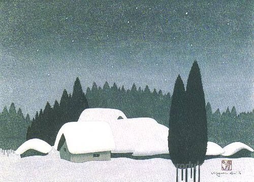 Wir bieten Ihnen eine handgefertigte Reproduktion auf Leinwand des berühmten Kunstwerks 'Aizu Winter-' von Kiyoshi Saito, aus dem Reproduktionsmuseum.