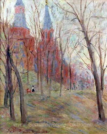 Wir bieten Ihnen eine handgefertigte Reproduktion auf Leinwand des berühmten Kunstwerks 'Alexander Garten der Nähe des Kreml' von Konstantin Yuon, aus dem Reproduktionsmuseum.