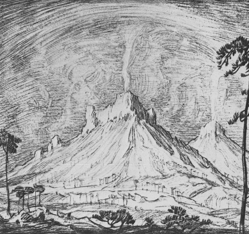 Wir bieten Ihnen eine handgefertigte Reproduktion auf Leinwand des berühmten Kunstwerks 'Altäre in der Wüste' von Konstantin Bogaevsky, aus dem Reproduktionsmuseum.