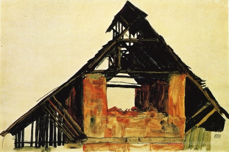 Wir bieten Ihnen eine handgefertigte Reproduktion auf Leinwand des berühmten Kunstwerks 'Alte Backsteinhaus in Kärnten' von Egon Schiele, aus dem Reproduktionsmuseum.