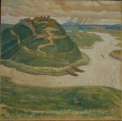Wir bieten Ihnen eine handgefertigte Reproduktion auf Leinwand des berühmten Kunstwerks 'Alte Stadt' von Nicholas Roerich, aus dem Reproduktionsmuseum.
