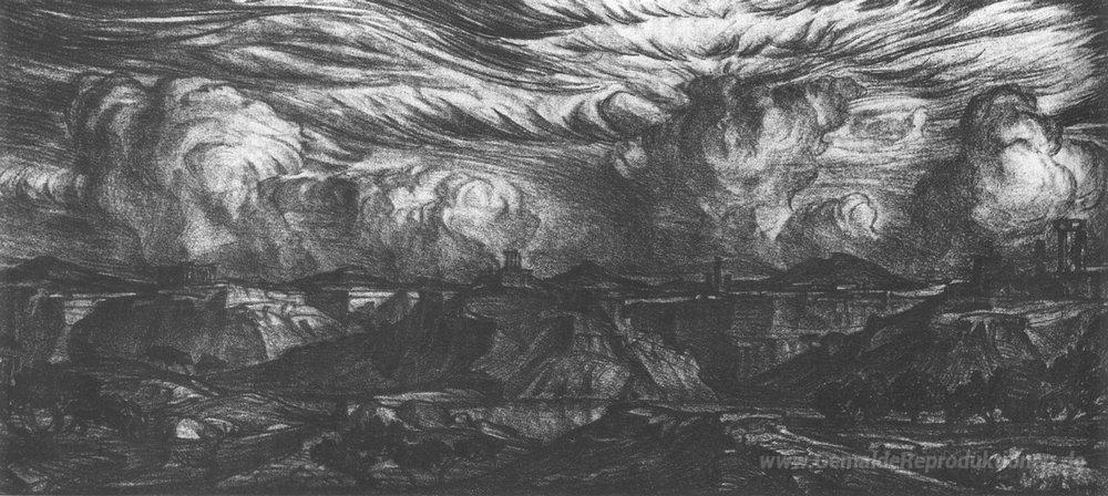 Wir bieten Ihnen eine handgefertigte Reproduktion auf Leinwand des berühmten Kunstwerks 'Altes Land' von Konstantin Bogaevsky, aus dem Reproduktionsmuseum.