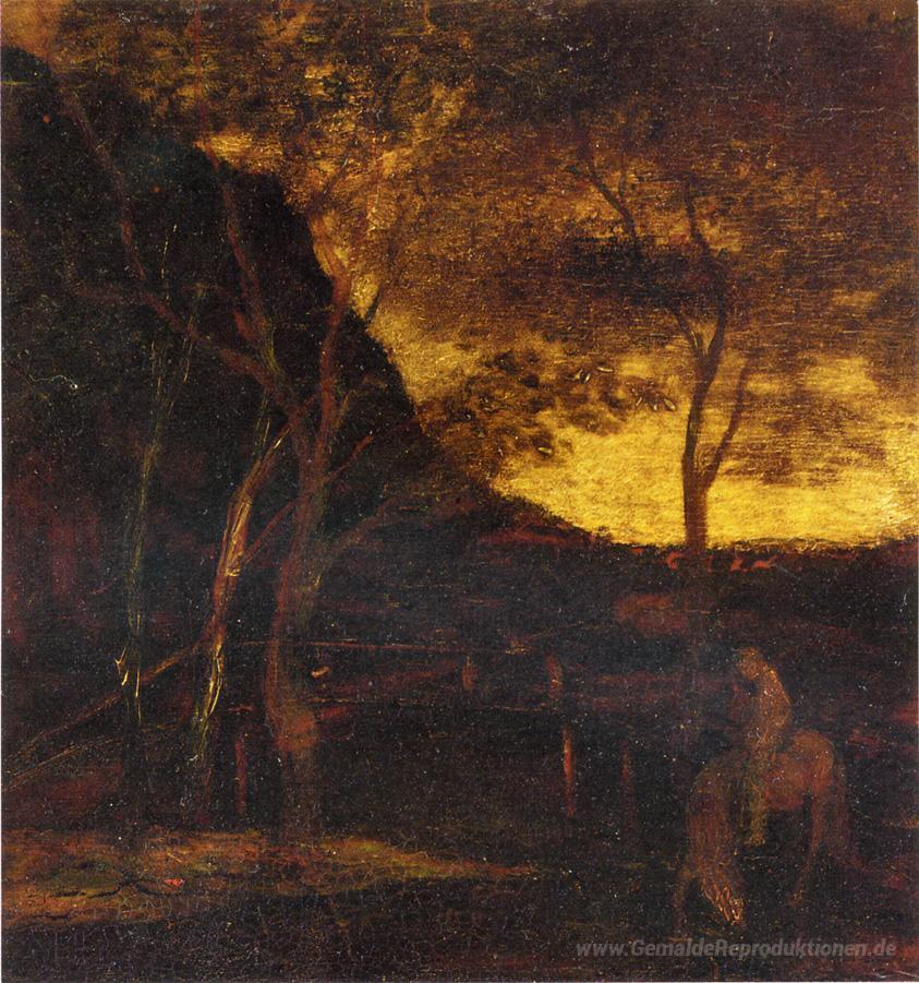 Wir bieten Ihnen eine handgefertigte Reproduktion auf Leinwand des berühmten Kunstwerks 'Am Ford' von Albert Pinkham Ryder, aus dem Reproduktionsmuseum.