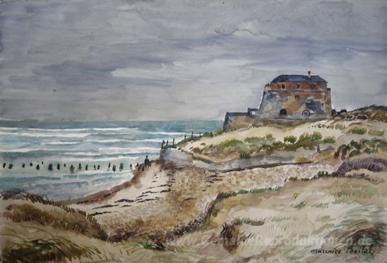 Wir bieten Ihnen eine handgefertigte Reproduktion auf Leinwand des berühmten Kunstwerks 'Ambleteuse Fort Vauban' von Maurice Boitel, aus dem Reproduktionsmuseum.