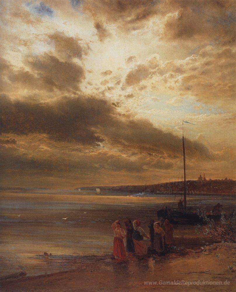 Wir bieten Ihnen eine handgefertigte Reproduktion auf Leinwand des berühmten Kunstwerks 'An der Wolga' von Aleksey Savrasov, aus dem Reproduktionsmuseum.