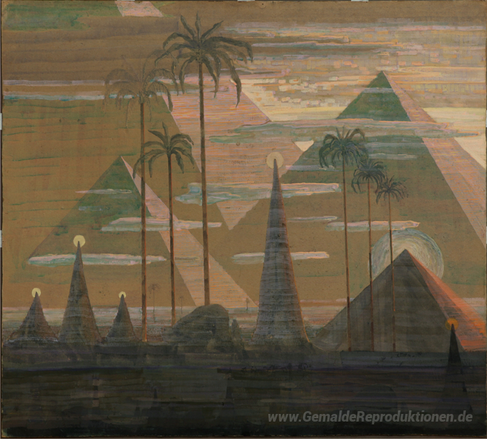 Wir bieten Ihnen eine handgefertigte Reproduktion auf Leinwand des berühmten Kunstwerks 'Andante (Sonata der Pyramiden)' von Mikalojus Ciurlionis, aus dem Reproduktionsmuseum.