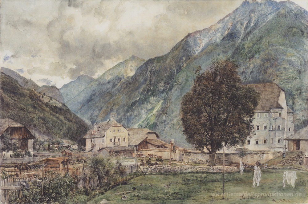 Wir bieten Ihnen eine handgefertigte Reproduktion auf Leinwand des berühmten Kunstwerks 'Ansicht von Böckstein und der Eingang zum Anlauftal' von Rudolf von Alt, aus dem Reproduktionsmuseum.