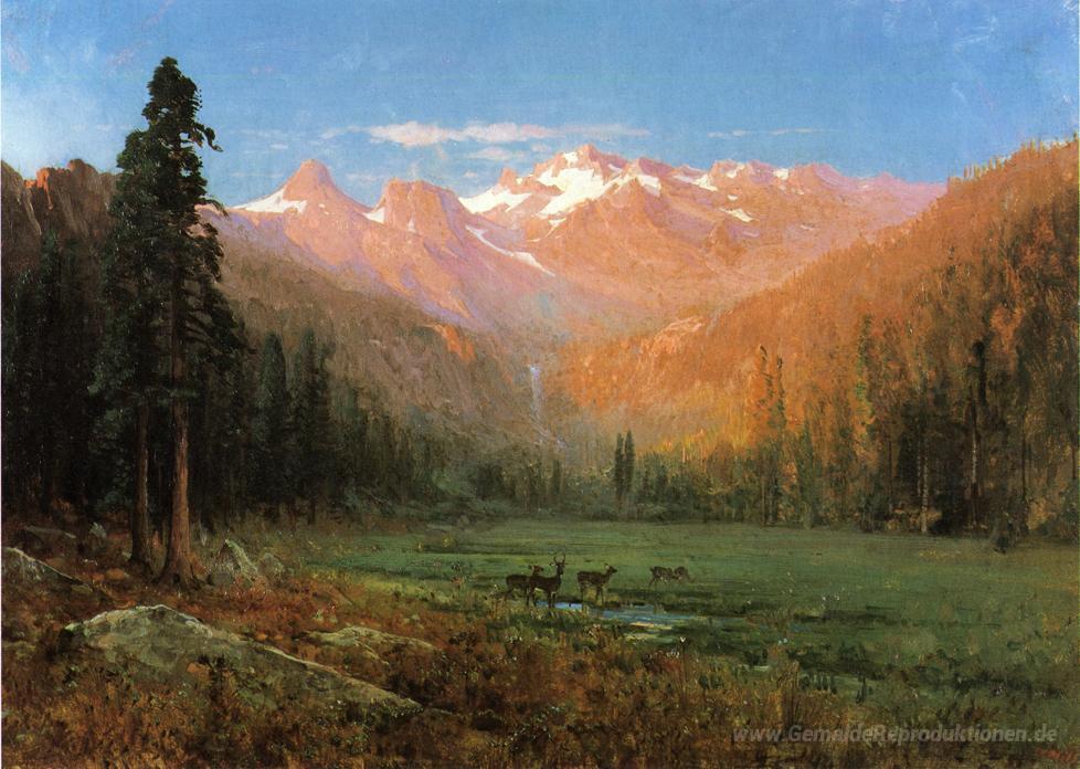 Wir bieten Ihnen eine handgefertigte Reproduktion auf Leinwand des berühmten Kunstwerks 'Ansicht von Cascade See, in der Nähe von Tahoe' von Thomas Hill, aus dem Reproduktionsmuseum.