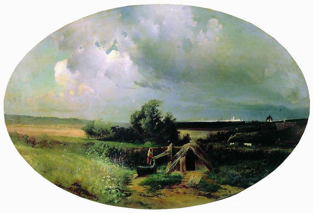 Wir bieten Ihnen eine handgefertigte Reproduktion auf Leinwand des berühmten Kunstwerks 'Ansicht von Moskau aus Mazilova' von Aleksey Savrasov, aus dem Reproduktionsmuseum.