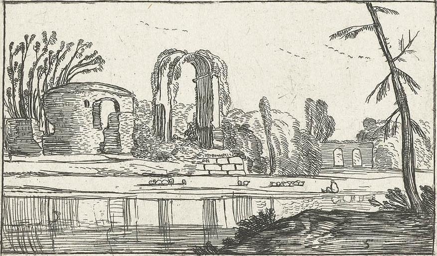Wir bieten Ihnen eine handgefertigte Reproduktion auf Leinwand des berühmten Kunstwerks 'Antike Ruinen von einem Fluss' von Esaias van de Velde, aus dem Reproduktionsmuseum.