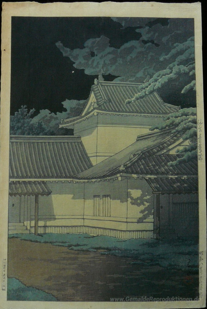 Die raffinierte Technik des Künstlers, kombiniert mit seiner Leidenschaft für Detail und Licht, transportiert Betrachter in die friedlichen Landschaften Japans. Die Wirkung eines solchen Gemäldes ist unbestreitbar: Aoba Castle, Sendai schafft eine Atmosphäre der Ruhe und Inspiration, die jeden Raum aufwertet. Genießen Sie die harmonische Verbindung von Kunst und Raumgestaltung und lassen Sie sich von der unverwechselbaren Handschrift Hasui Kawases verzaubern.