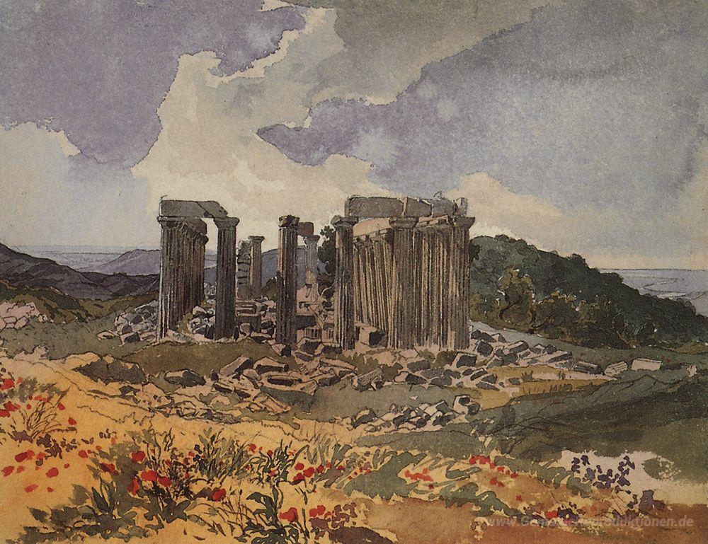 Wir bieten Ihnen eine handgefertigte Reproduktion auf Leinwand des berühmten Kunstwerks 'Apollon-Tempel in Phigalia' von Karl Bryullov, aus dem Reproduktionsmuseum.