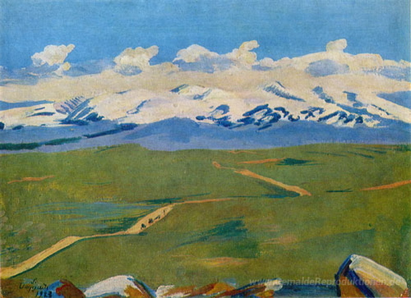 Wir bieten Ihnen eine handgefertigte Reproduktion auf Leinwand des berühmten Kunstwerks 'Aragats in Wolken' von Martiros Saryan, aus dem Reproduktionsmuseum.