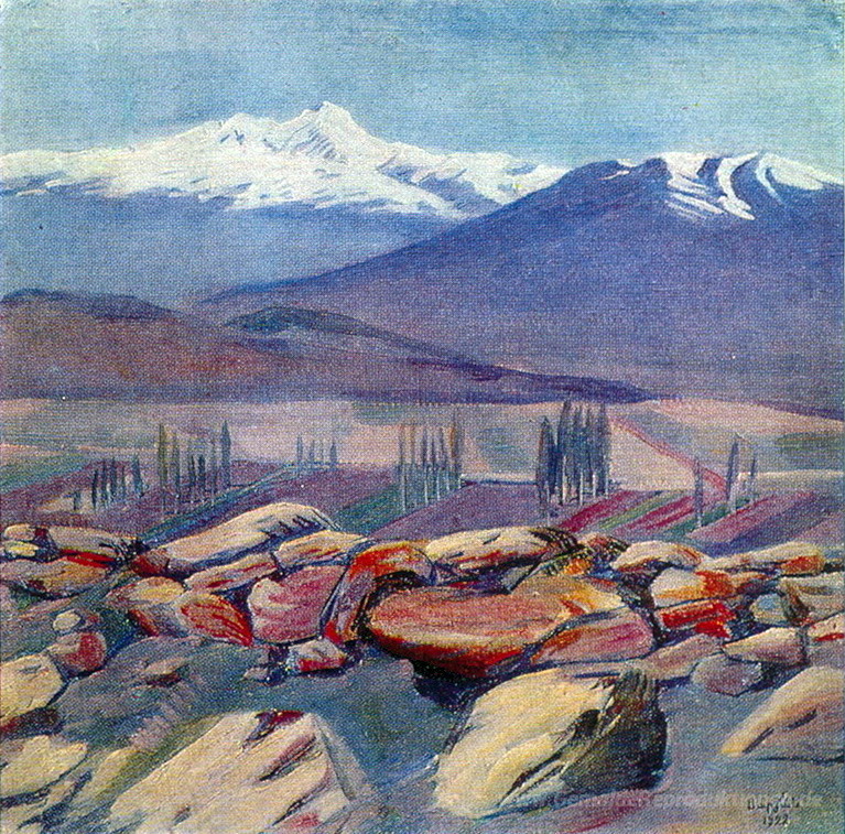 Willkommen in unserer exklusiven Sammlung von Ölgemälden, in der Kunst und Emotion auf einzigartige Weise verschmelzen. Besonders hervorzuheben ist das faszinierende Werk Aragats und Mount Ara des renommierten Künstlers Martiros Saryan. Saryan, bekannt für seine lebendigen Farben und ausdrucksstarken Landschaften, schafft es, die natürliche Schönheit Armeniens in beeindruckender Detailgenauigkeit einzufangen.