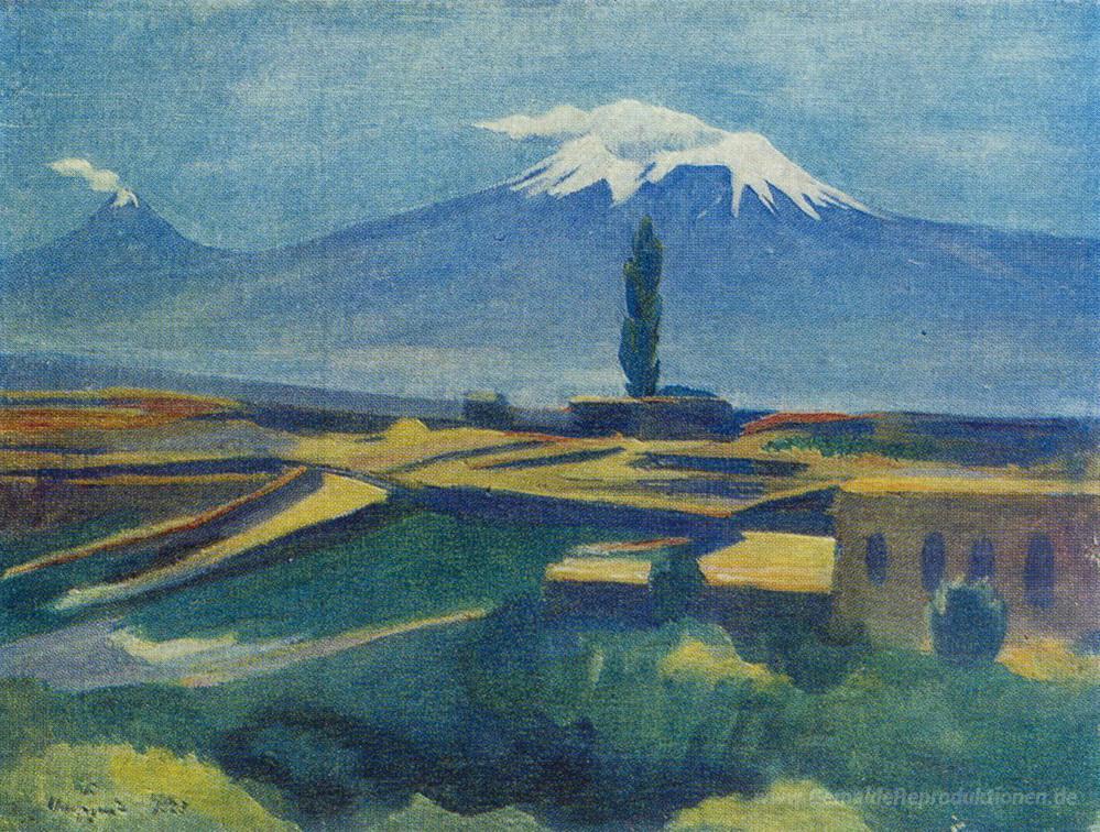 Wir bieten Ihnen eine handgefertigte Reproduktion auf Leinwand des berühmten Kunstwerks 'Ararat' von Martiros Saryan, aus dem Reproduktionsmuseum.