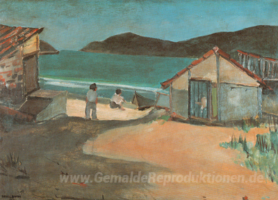 Wir bieten Ihnen eine handgefertigte Reproduktion auf Leinwand des berühmten Kunstwerks 'Arraial do Cabo' von Jose Pancetti, aus dem Reproduktionsmuseum.