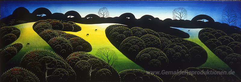 Wir bieten Ihnen eine handgefertigte Reproduktion auf Leinwand des berühmten Kunstwerks 'Arroyos' von Eyvind Earle, aus dem Reproduktionsmuseum.