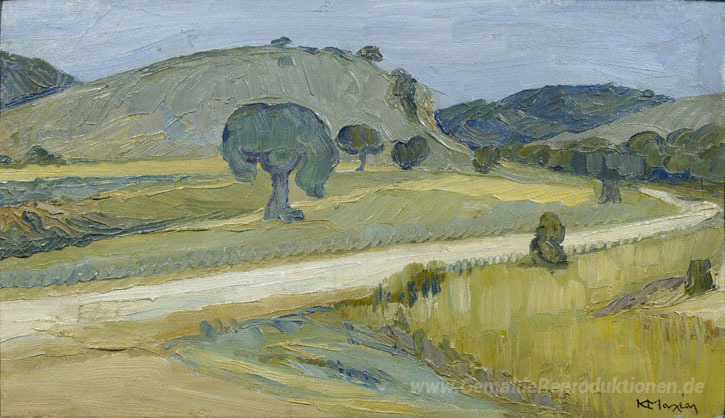 Wir bieten Ihnen eine handgefertigte Reproduktion auf Leinwand des berühmten Kunstwerks 'Attica Landschaft' von Constantine Maleas, aus dem Reproduktionsmuseum.