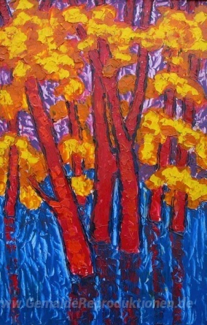 Wir bieten Ihnen eine handgefertigte Reproduktion auf Leinwand des berühmten Kunstwerks 'Auenwald' von Endre Bartos, aus dem Reproduktionsmuseum.