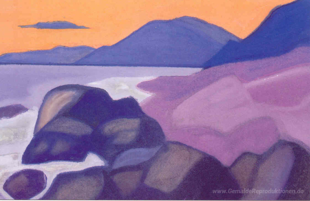 Wir bieten Ihnen eine handgefertigte Reproduktion auf Leinwand des berühmten Kunstwerks 'Auf dem See Shop-Pangalo' von Nicholas Roerich, aus dem Reproduktionsmuseum.