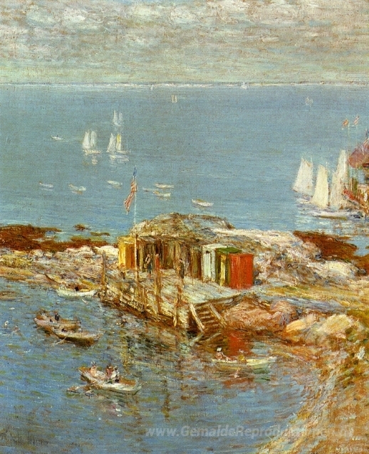 Wir bieten Ihnen eine handgefertigte Reproduktion auf Leinwand des berühmten Kunstwerks 'August Nachmittag, Appledore' von Childe Hassam, aus dem Reproduktionsmuseum.