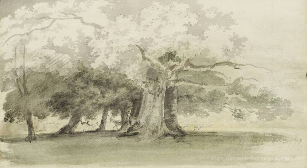 Wir bieten Ihnen eine handgefertigte Reproduktion auf Leinwand des berühmten Kunstwerks 'Bäume in einem Park' von Thomas Girtin, aus dem Reproduktionsmuseum.
