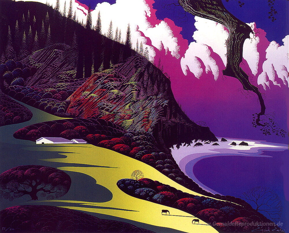 Willkommen in der faszinierenden Welt der Ölgemälde, wo Farbe und Emotionen miteinander verschmelzen. Jedes Kunstwerk erzählt eine eigene Geschichte und bringt die Vision des Künstlers zum Ausdruck. Eines unserer Highlights ist Barns By the Sea von Eyvind Earle, ein Meisterwerk, das durch seinen einzigartigen Stil besticht. Earle ist bekannt für seine beeindruckenden Landschaften, die die Schönheit der Natur in Kombination mit einem ausgeprägten grafischen Ansatz darstellen.