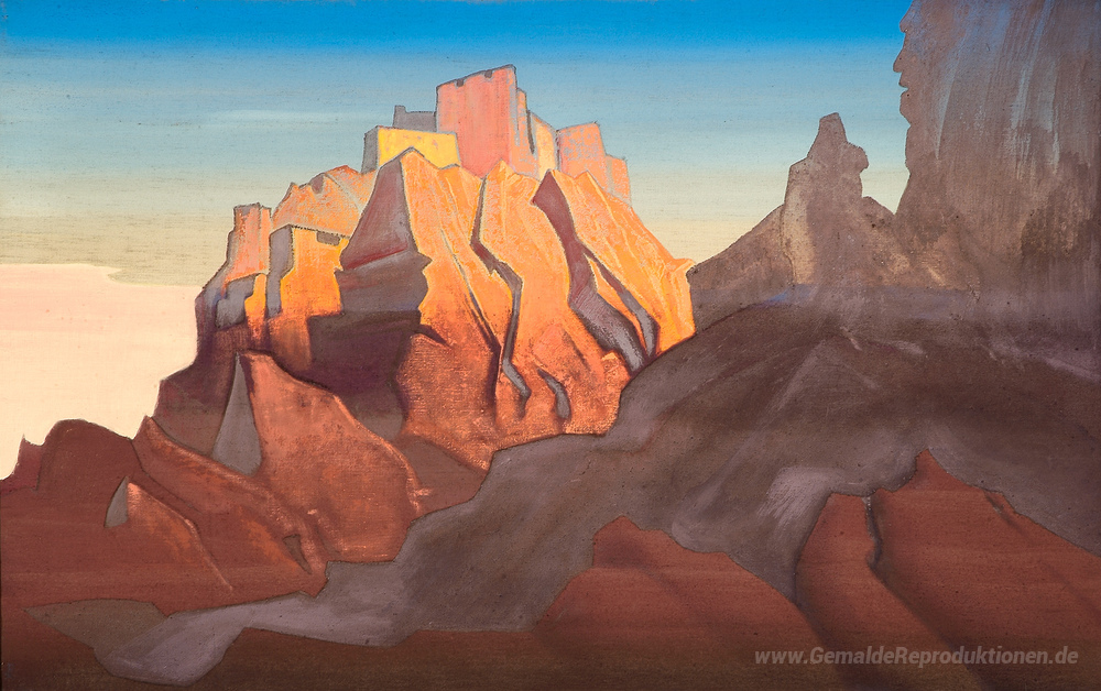 Wir bieten Ihnen eine handgefertigte Reproduktion auf Leinwand des berühmten Kunstwerks 'Basgo' von Nicholas Roerich, aus dem Reproduktionsmuseum.