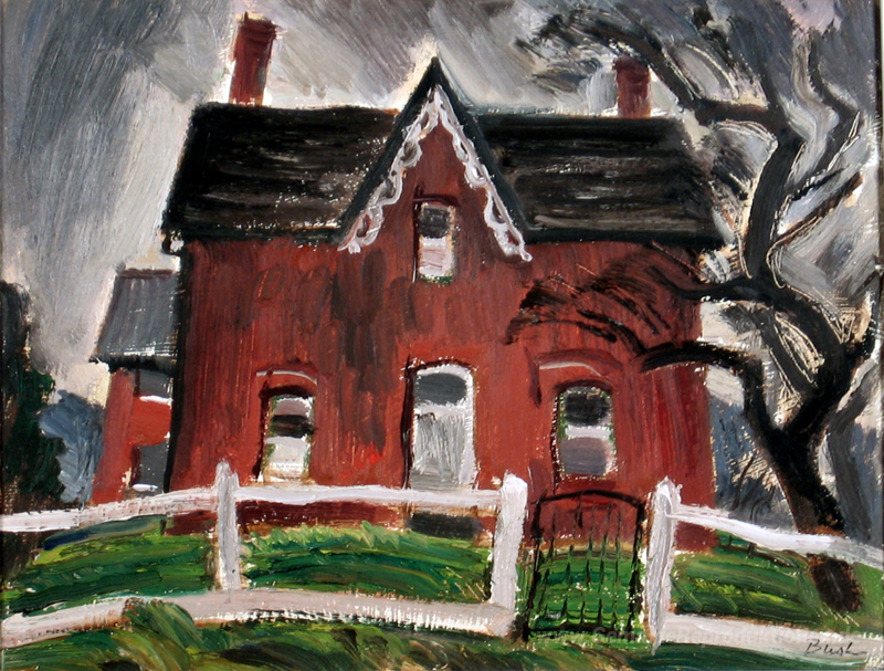 Wir bieten Ihnen eine handgefertigte Reproduktion auf Leinwand des berühmten Kunstwerks 'Bauernhaus, Caledon' von Jack Bush, aus dem Reproduktionsmuseum.